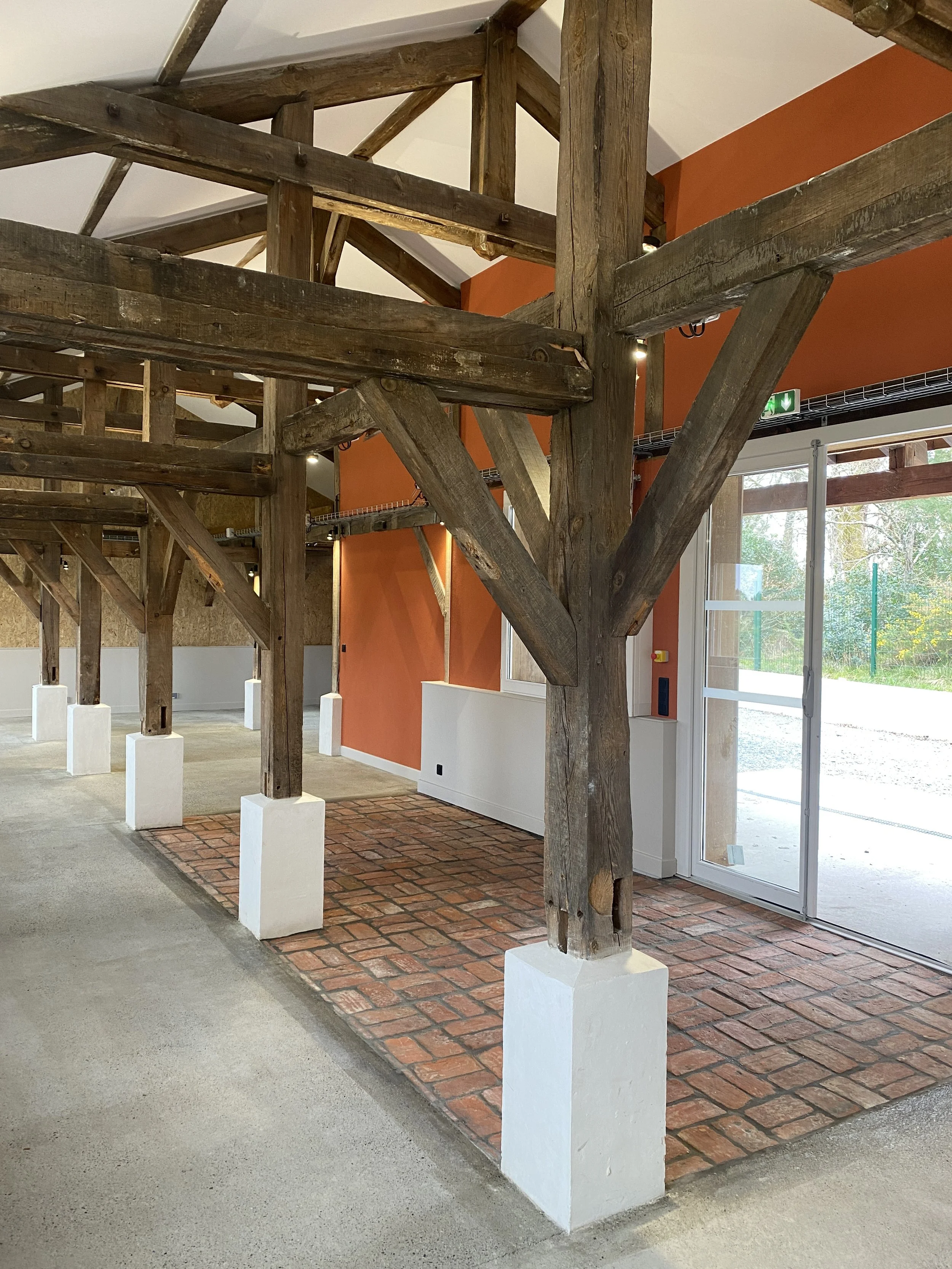 Le projet porte sur la transformation d’une ancienne grange appartenant à la mairie en pôle artisanale. Le choix architectural a été la mise en valeur de la charpente existante et son utilisation pour délimiter les espaces. Au sein de l’enveloppe existante, le projet prend appui sur la trame pour délimiter les espaces de travail. Toute la conception des détails donne à voir la charpente et la met en valeur. Les tomettes existantes ont été réutilisées pour démarquer l’espace d’entrée. L’isolation est biosourcée, il s’agit de laine de coton, chanvre et lin.